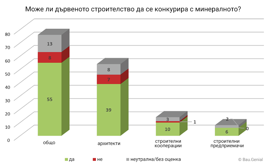 - 72% са на мнение, че дървеното строителство може да се конкурира с минералното.