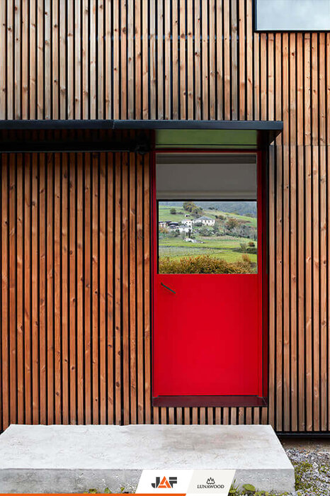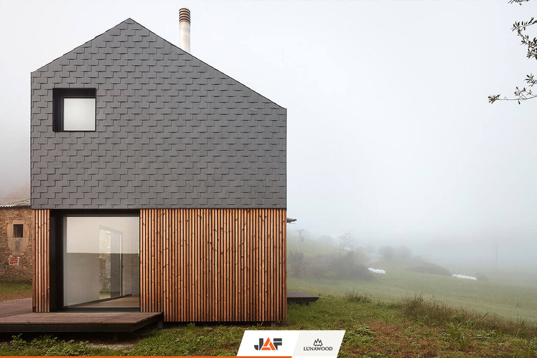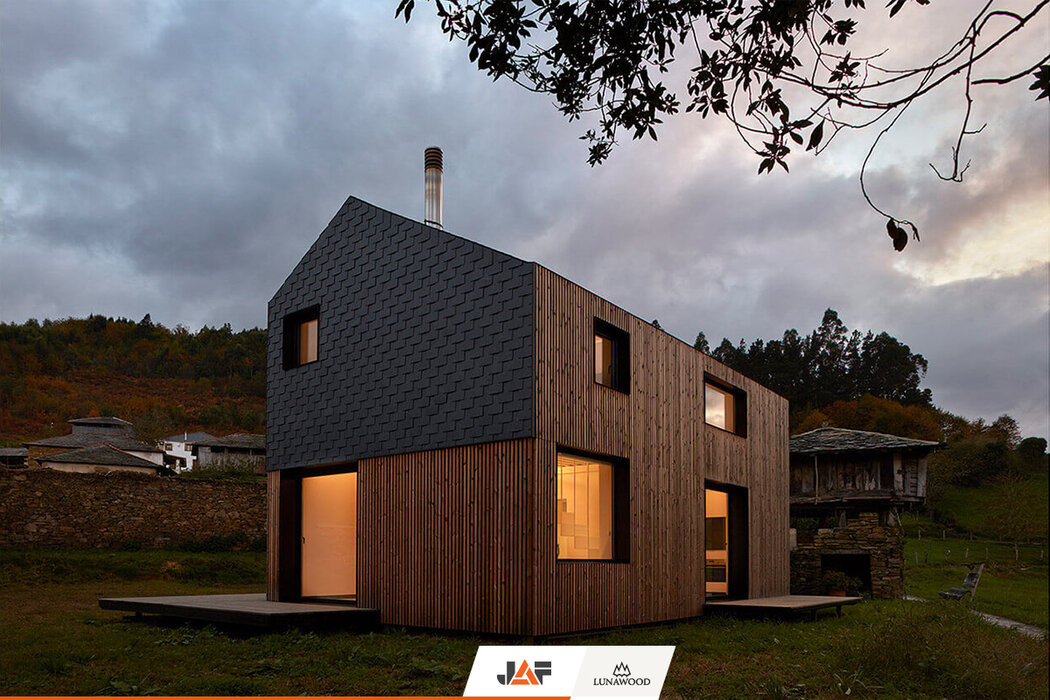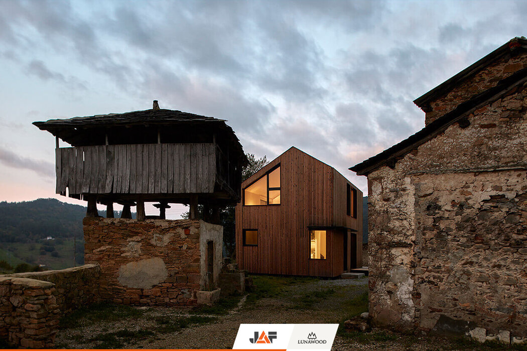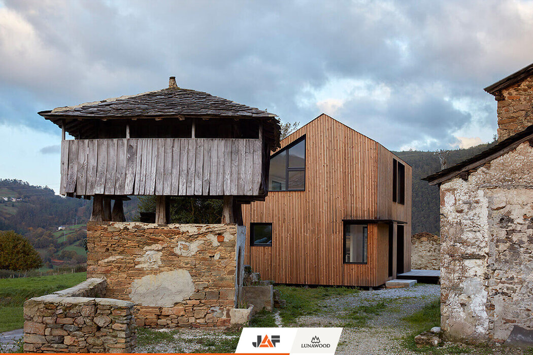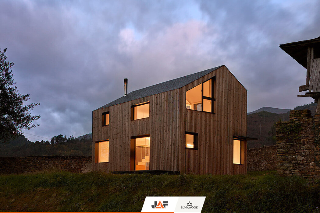 Влюбени в Астурия, английски ландшафтен архитект и неговото семейството избират историческия планински район за своя втори дом. Къщата-мечта е произведена за четири месеца във фабрика за модулно строителство в Мадрид. Оттам, пресичайки Кантабрийските планини, е транспортирана на 600 км до крайното ѝ местоположение, където е сглобена само за 5 часа. Покривът от черни шистови плочи е изработен от местен майстор. Изисканата фасада от вертикални профили от термобор на Lunawood придава модерно излъчване на сградата като същевременно ѝ позволява да се впише хармонично в околната историческата обстановка.