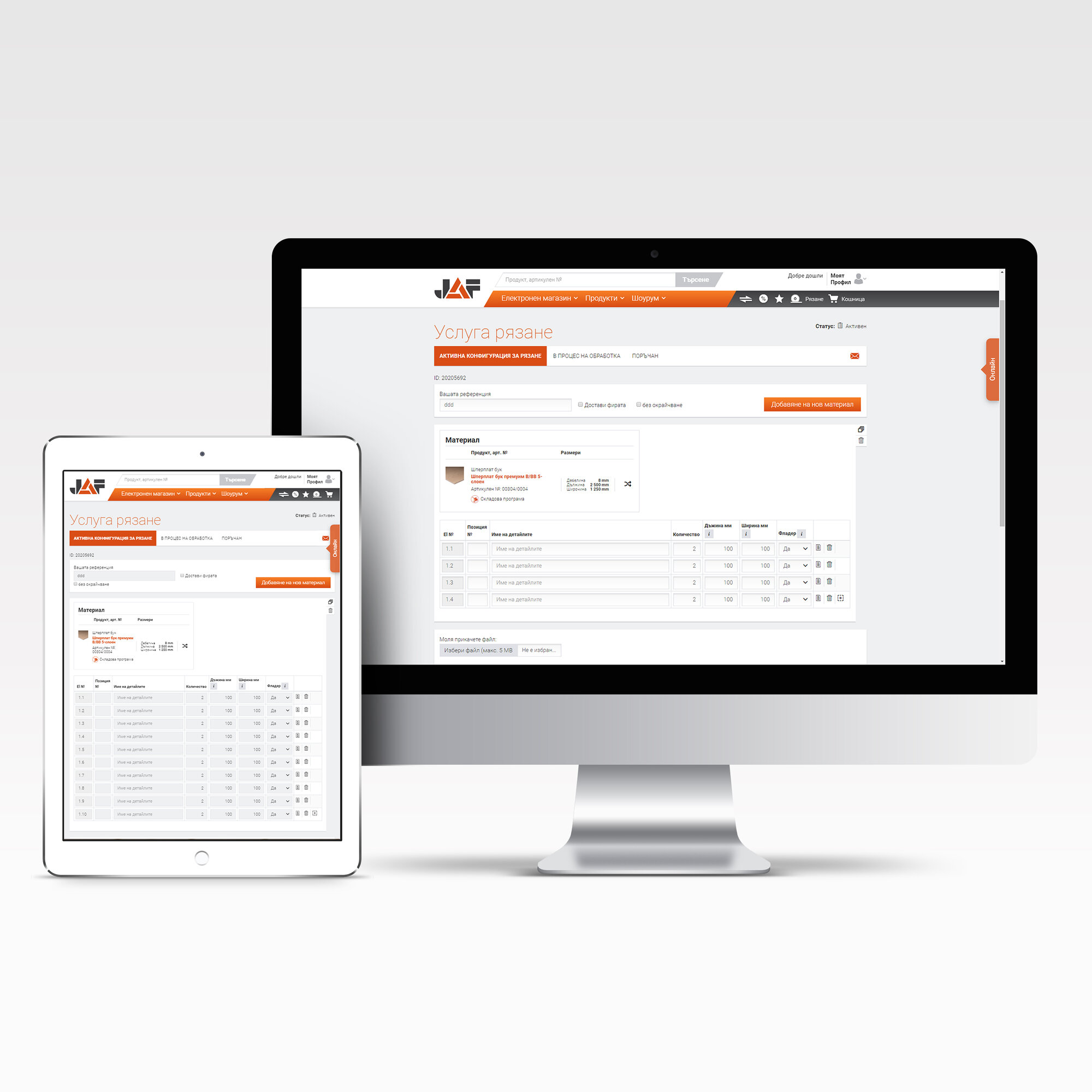 Запознайте се с първата в България онлайн платформа за рязане и кантиране! С нея получавате възможност за оптимизация на поръчаните плоскости директно от мобилното си устройство по всяко време на денонощието. Задаване на размери и посока на фладера на компонентите, избор на кант – само с няколко клика Вашата конфигурация ще бъде готова за поръчка независимо от работното време на филиалите ни. Калкулацията на крайната цена получавате на момента, а стоката се резервира за Вас автоматично с поръчката.