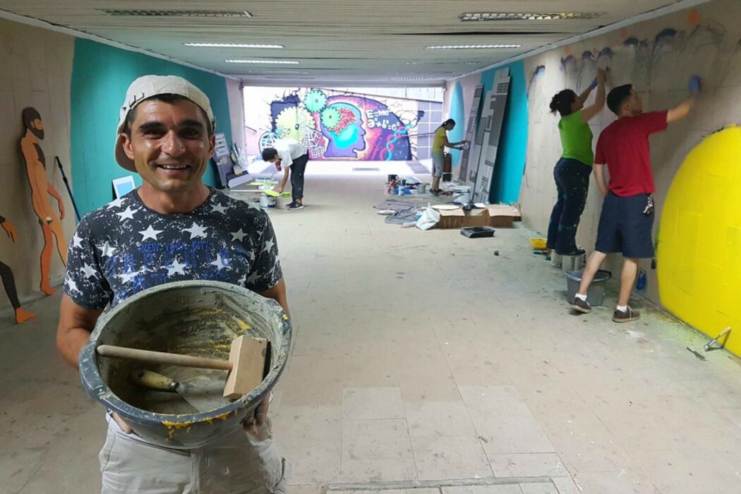 С материали от ЙАФ бяха изградени обемните инсталации по стените на подлеза.