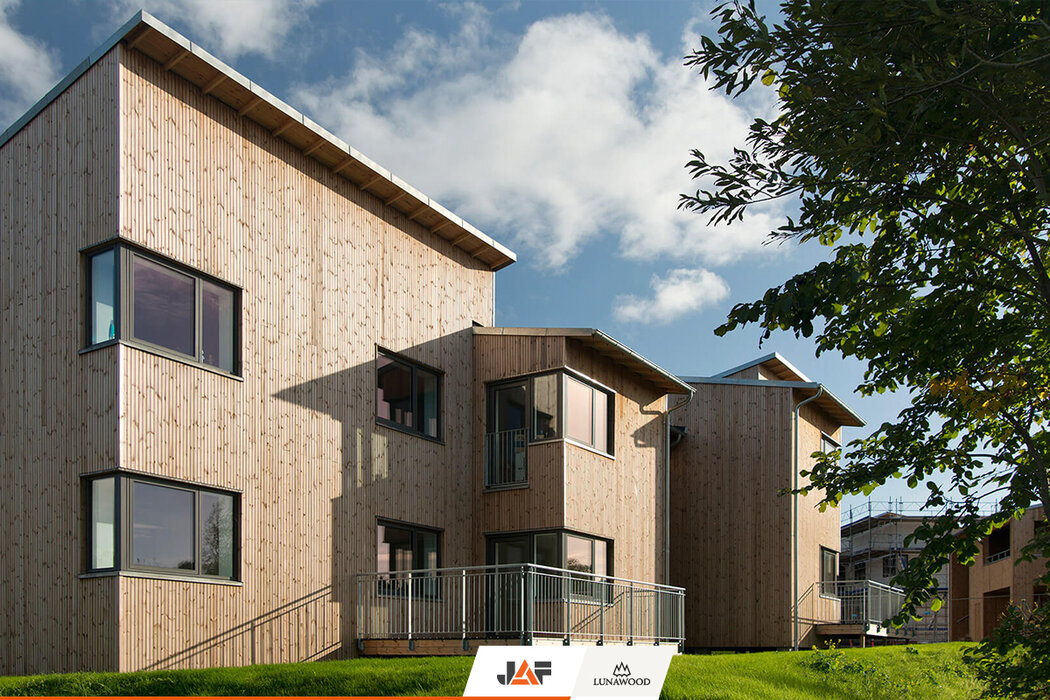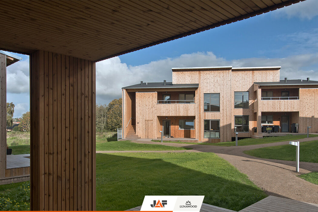 При всеки нов проект термоборът успява да ни изненада с нещо. Името на комплекса Фойерверк парк напомня за разразилия се мощен пожар през 2004 г., унищожил почти напълно част от къщите в района в следствие на избухването на близкостояща фабрика и склад за фойерверки. С помощта на фасада от термодървесина на Lunawood жилищните постройки са възкресени и сериозно подобрени в дизайнерско и енергийно отношение. С тази модерна трансформация жителите им вече се радват на значително по-здравословна и устойчива жилищна среда.