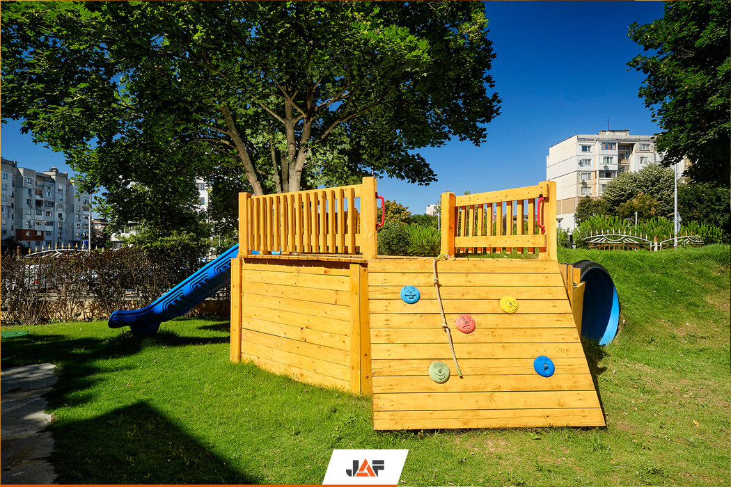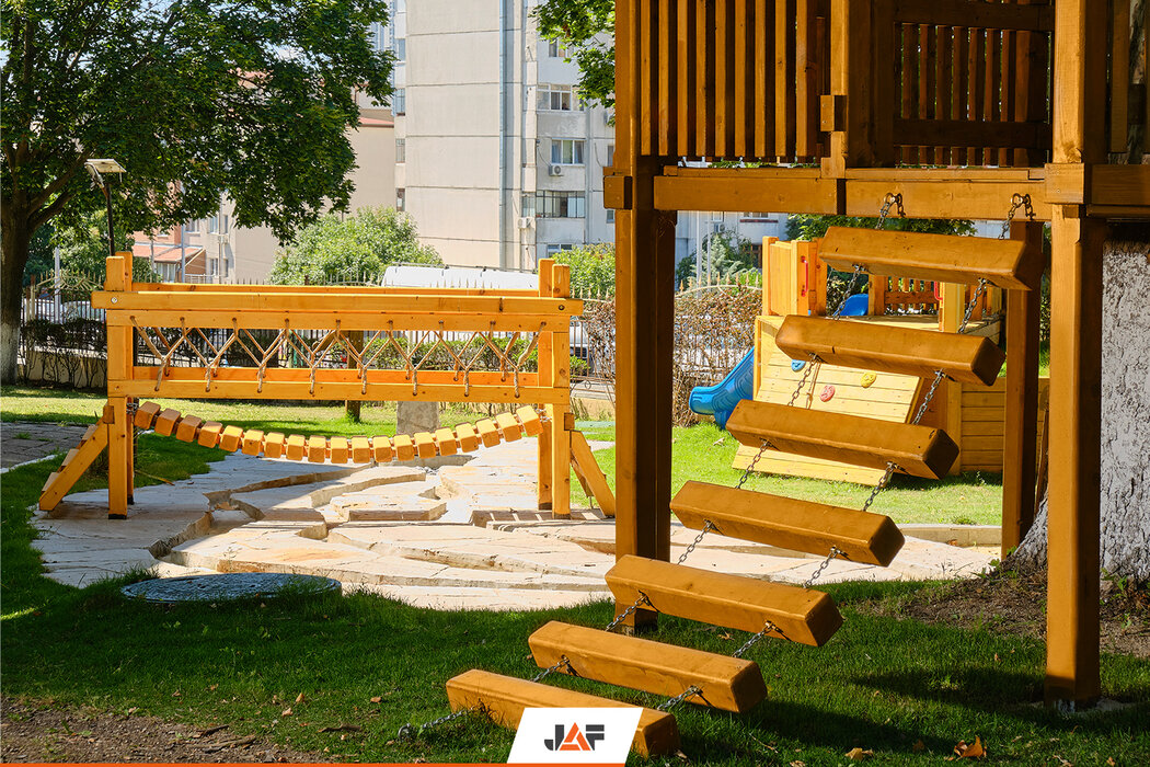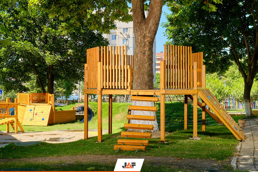 Новите катерушки в двора на бургаската детска градина „Морска звезда“ бяха изградени от висококачествена иглолистна дървесина на ЙАФ.