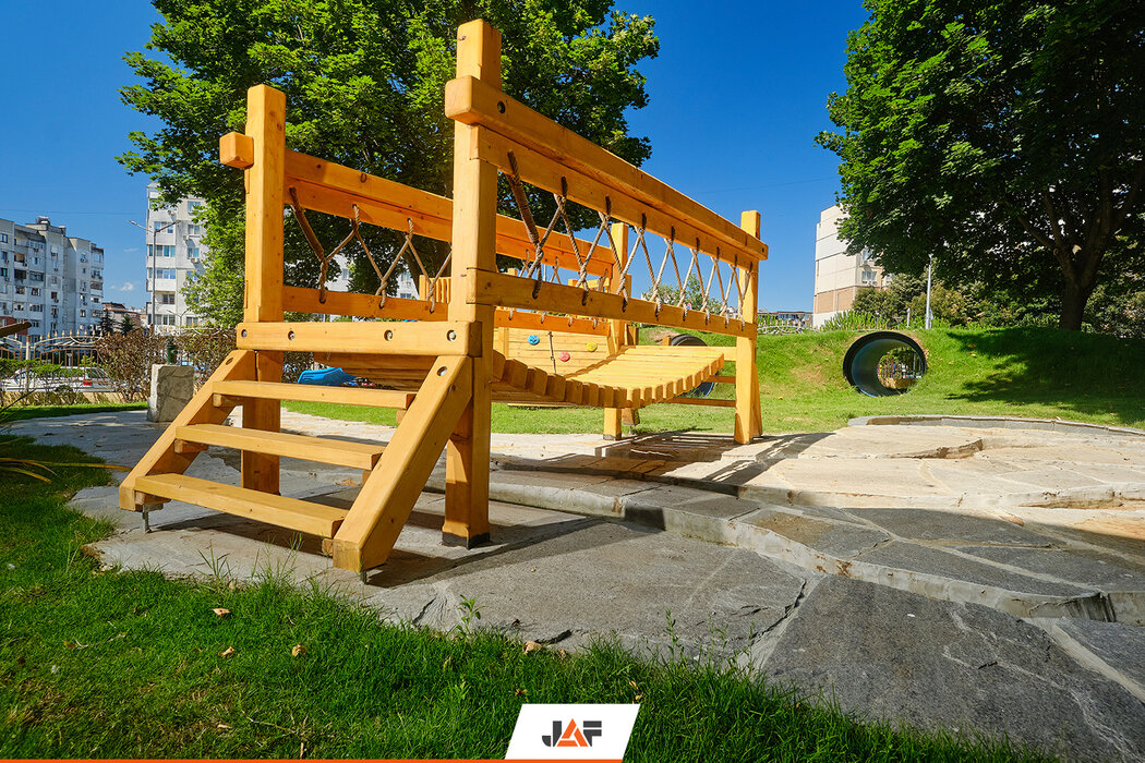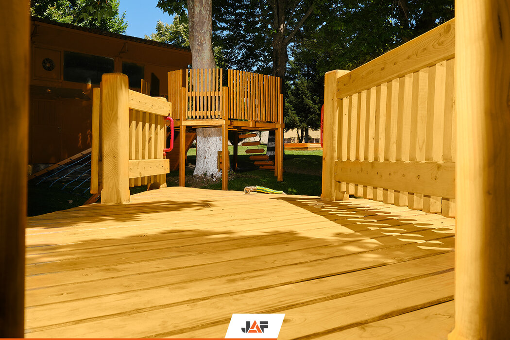 Проектирането и изграждането на съоръженията беше поверено на доказан местен партньор – бургаската фирма Гартланд. Използваният за направата им висококачествен четиристранно рендосан иглолистен материал с фаски, както и екстериорното масло Tikkurila за защитна обработка на повърхностите бяха доставени от ЙАФ Варна. Убедете се сами в блестящия резултат!