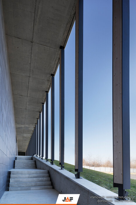 За изработката на оригиналните колони ЙАФ достави многослойно слепени греди с качество за видими приложения. Поради заложените в проекта нестандартни за индустрията сечения елементите бяха изработени по поръка и доставени на зададените от клиента дължини.
