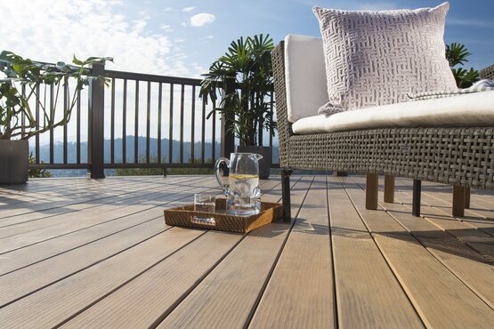 По този начин Вашата тераса е защитена от нападение на насекоми, мухъл, образуване на трески и измятане. Забравяте и за подмяната на гниещи, изкривени или увредени от термити ламели. Точно както гласи фирменото мото: Less work, more life.