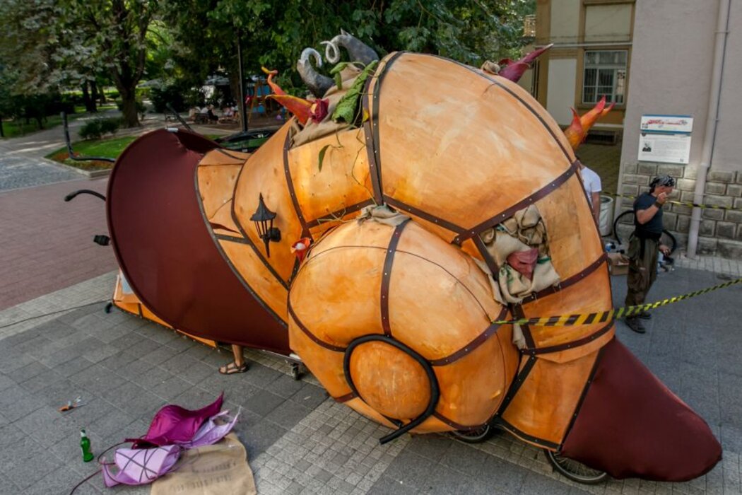 „Охлюмотивът“ е нов уличен спектакъл на театъра. Той е магическа машина, управлявана от гиганти на кокили и цветни изследователи. Приказните същества раздават ключове, с чиято помощ публиката открива интересни факти за охлювите, скрити в различни части на Охлюмотива.