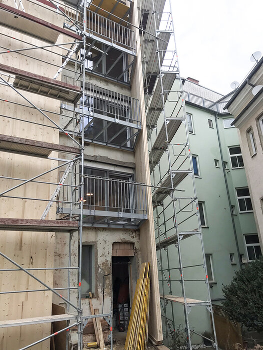 Заслугата за отнелото само седем дни надстрояване на многофамилната сграда е най-вече на ангажирания проектен мениджмънт. От предварителните замервания до проектирането на елементите и оптимизирането на проекта ЙАФ подпомагаше с ноу-хау както дърводелското ателие Hartl, така и с PM Holzdesign. А в самото начало беше заложено конвенционално надстрояване посредством масивно строителство. В последствие този вариант беше отхвърлен в полза на спестяващите време дървени масивни панели. Поради отпадане на необходимостта от съхнене и минималното тегло на строителните материали сроковете бяха съкратени значително. „В началото залагахме 12 седмици проекта, но благодарение на CLT панелите успяхме да го завършим за едва седем дни!“, изказва въодушевлението си Томас Майр от PM Holzdesign.