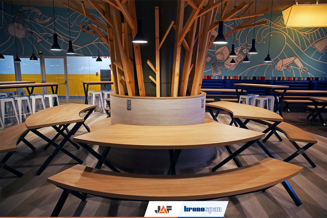 Столовата на Автономния университет в Барселона, разположена в сърцето на факултета по Инженерен дизайн, e местенце, в което студентите могат да разпускат след часовете. Неговата концепция е да пресъздаде релаксиращата атмосфера на морския бряг и да бъде място за неангажираното общуване с приятели. Цветовата гама е микс от морско синьо, пясъчно бежово и меки, слънчеви тонове.