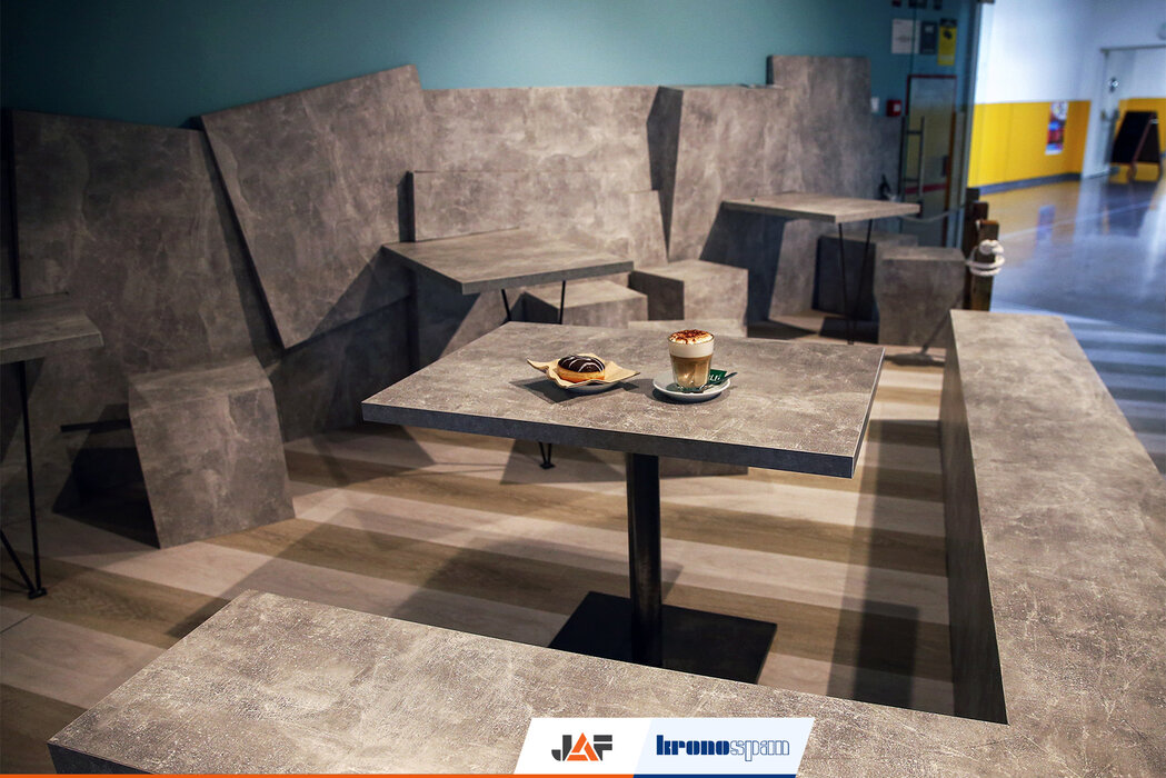 Настроението е подчертано с помощта на декор 4298 Light Atelier, напомнящ на морските скали и K006 Amber Urban Oak, разкриващ пясъчните дюни. От прагматична гледна точка подбраните материали са лесни за поддръжка и високо устойчиви на износване. Матовите повърхности в интериора добавят нежен нюанс като омекотяват светлината, а спокойствието, което се внушава, помага на студентите да се учат, социализират и развиват креативността си.