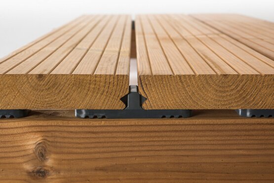 ЙАФ предлага съответстваща на това изискване система за скрит монтаж на декинг от дърво – Profix 2+ дава възможност за конструктивно отделяне на ламелата от подложната конструкция. Скобата е произведена от полиетилен с висока плътност и отговаря на всички изисквания и препоръки на HFA.