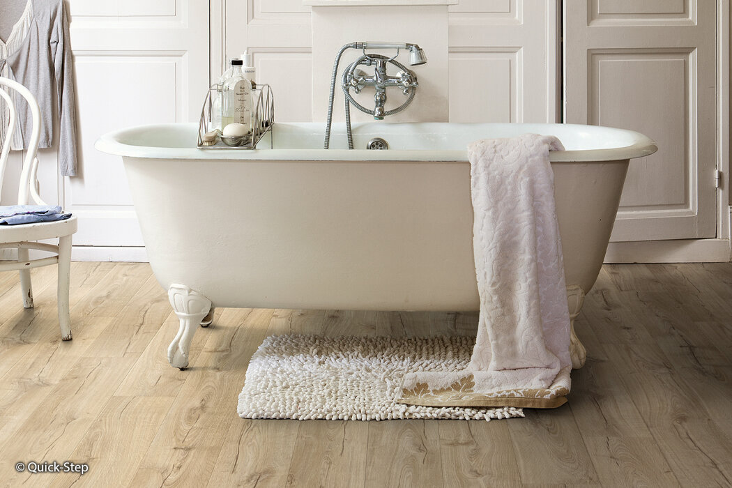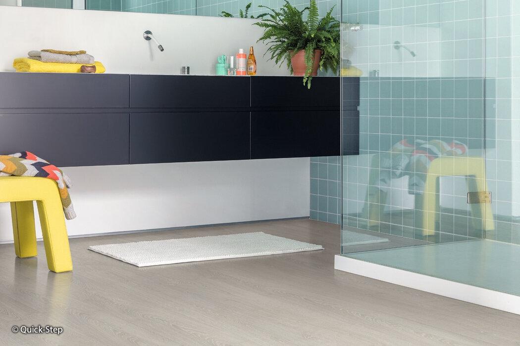 За пода на банята или кухнята обикновено автоматично се посяга към плочките или в отделни случаи към виниловите настилки – идеалните материали за натоварени помещения подложени на въздействието на влага. Quick-Step вече предлага тяхна алтернатива: колекцията Impressive Hydroseal е произведена от водоустойчив дървесен композит и е предназначена специално за влажни помещения в жилищния сектор.