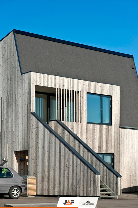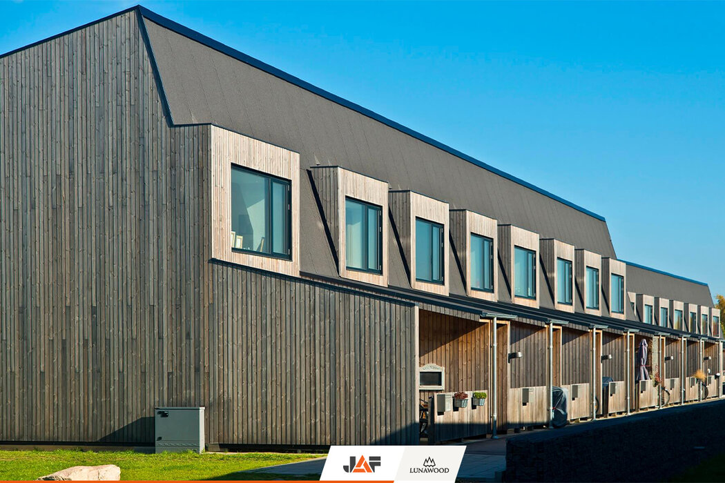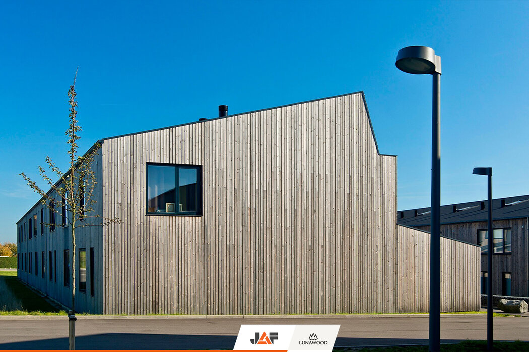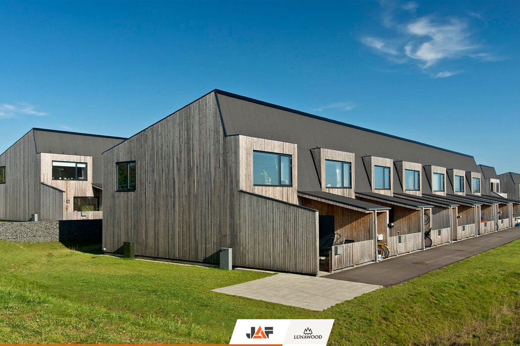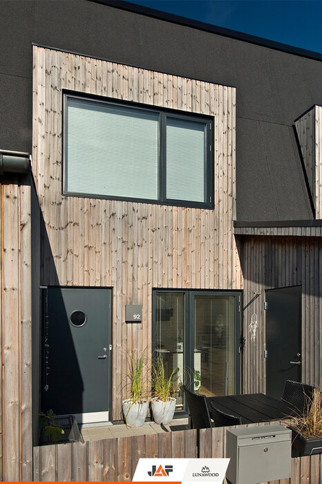 Населяван предимно от млади семейства с деца, жилищният комплекс Bakkehusene във втория по големина град в Дания – Орхус се състои от общо 47 редови къщи, разположени в няколко успоредни алеи. Сградите са проектирани с прави, ъгловати линии в търсене на оптималния баланс между лично пространство и жилищна общност. Енергийната ефективност е друг важен акцент на комплекса. Устойчивата архитектура в комбинация с вложените естествени материали, сред които фасадни профили от термобор на Lunawood, допринасят за изключително ниските енергийни нужди на сградите и осигуряват здравословна жилищна среда за поколения наред.