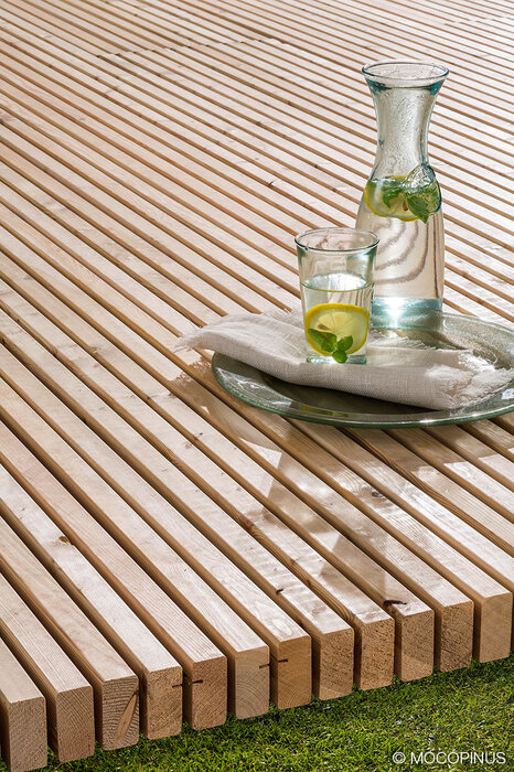 Какво е революционното в декинга на Mocopinus? Pinutex е цялостна система за изграждане на дървени тераси от сибирска лиственица и впечатлява с естественото си излъчване, дълготрайност, лесен монтаж и особен дизайн. За разлика от конвенционалния декинг, тук профилите са ориентирани с тясната си страна спрямо основата и могат да бъдат шлайфани многократно. Освен това, всички видове модули са предварително монтирани в готови елементи. Един отвсякъде иновативен продукт, който сега само получи компетентно потвърждение на качествата си. Мнението споделя и Ерик Ердман, маркетинг директор на Mocopinus: „Много се радваме на реномираното отличие. Със златото на Woody Award успяхме да постигнем доказателство за нашието високо ниво на иновации.“