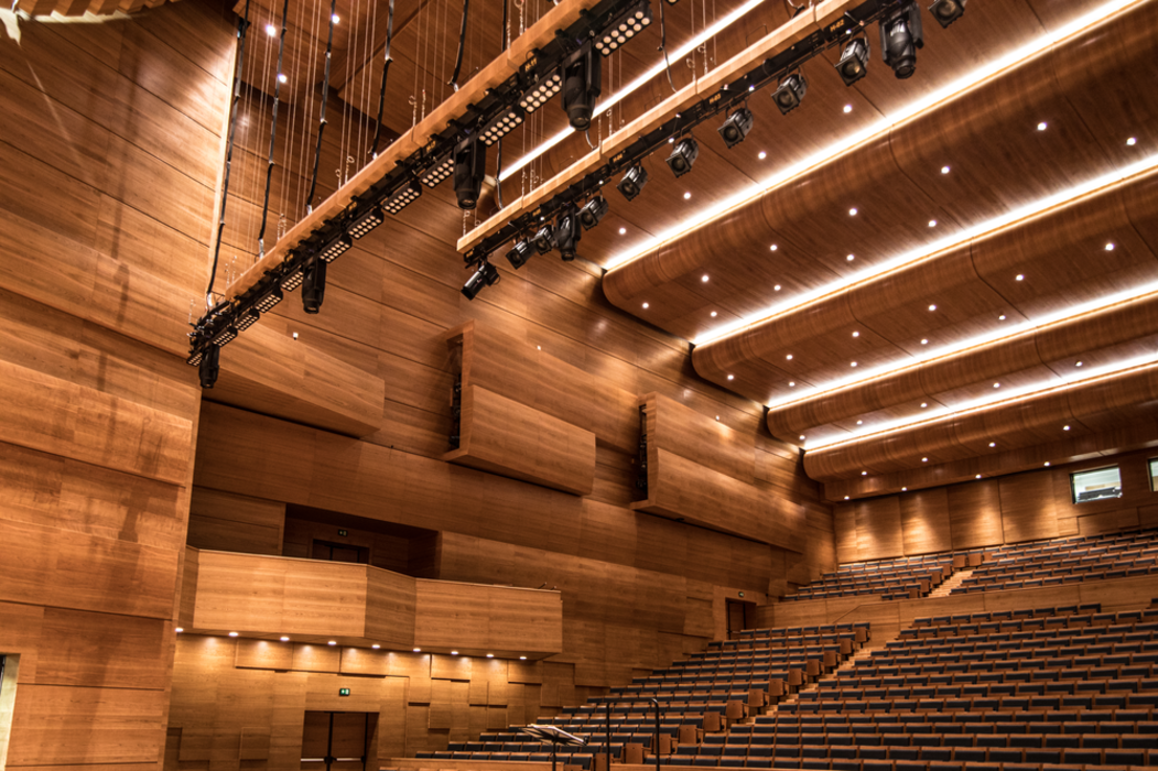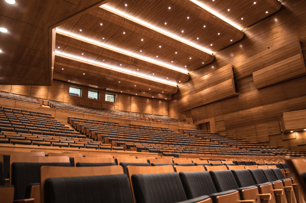 От създаването си през 1944 г. Македонската филхармония в Скопие е неизменна част от богатия културен пейзаж на Балканите. След мащабно строителство, през 2017 г. беше открит новият дом на знатната институция. Докато отвън излъчването на сградата е футуристично, то голямата концертна зала има какво да предложи и на любителите на природните съкровища. За елитния проект ЙАФ достави 10 000 м² фурнир от американска череша. Листовете с дебелина между 0,6 и 0,9 мм бяха вещо използвани в изработката на изящните акустични обшивки. Впечатляващият резултат е ярко доказателство за дизайнерският потенциал на фурнира, въпреки неговата деликатна наглед природа.