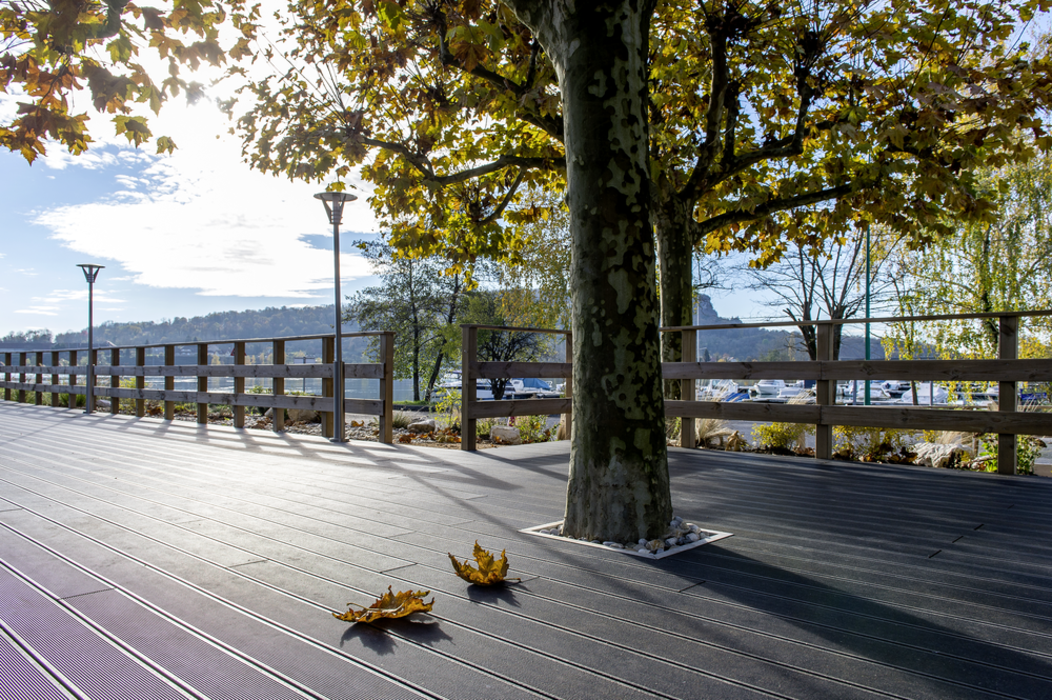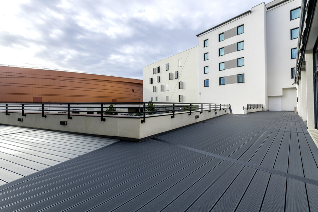 UPM ProFi Deck е иновативна система за изграждане на тераси. Благодарение на здравата повърхност, дълготрайността на цветовете и стабилността на формата, този материал намира отлично приложение за градински и покривни тераси, заведения, околобасейнови пространства, дворни пътеки и кейове. Двустранно профилираните ламели запазват с години отличния си вид. Необходимите грижи в същото време са сведени до минимум. Съставният материал е почти изцяло лишен от лигнин – виновникът за посивяването на дървесината. Тъй като напомнящата камък повърхност е запечатана, течности като вино или олио могат просто да бъдат избърсани. С UPM ProFi Deck е изключена опасността от нараняване на трески или стружки.