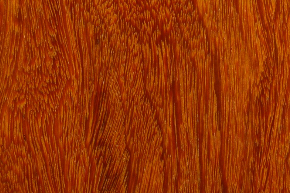 Дървесина: След изсушаване сърцевината варира от светло оранжево-кафяво до тъмно червеникаво-кафяво, понякога с контрастни по-тъмни сиво-кафяви ивици. При излагане на светлина потъмнява допълнително. Беловината е светло сивкаво-жълта, ясно разграничена. Структурата е типична виторасла, текстурата – средна до умерено груба, с естествен златист блясък. Тежка, плътна (ок. 910 кг/м3), твърда, еластична дървесина с добра дименсионална стабилност. Много дълготрайна и устойчива на гниене, гъбични нападения и на нападение от повечето насекоми.