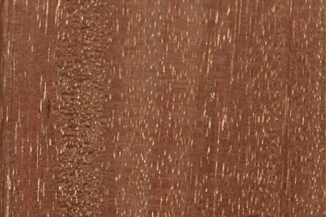 Дървесина: Сърцевината варира от сьомгово до червеникаво-кафяво и потъмнява под въздействие на светлината до светломахагоново. Беловината е сивкаво-бяла, често без отчетливо разграничение. Радиалните повърхности се отличават с характерните махагонови ивици. Структурата е хомогенна, обикновено леко виторасла, текстурата – средна, с добър естествен блясък. Относително лека (ок. 410 кг/м3) и мека дървесина, сравнима с тази на тополата. В зависимост от посоката на влакната – задоволителна до добра дименсионална стабилност. Неустойчива на гниене и насекоми.