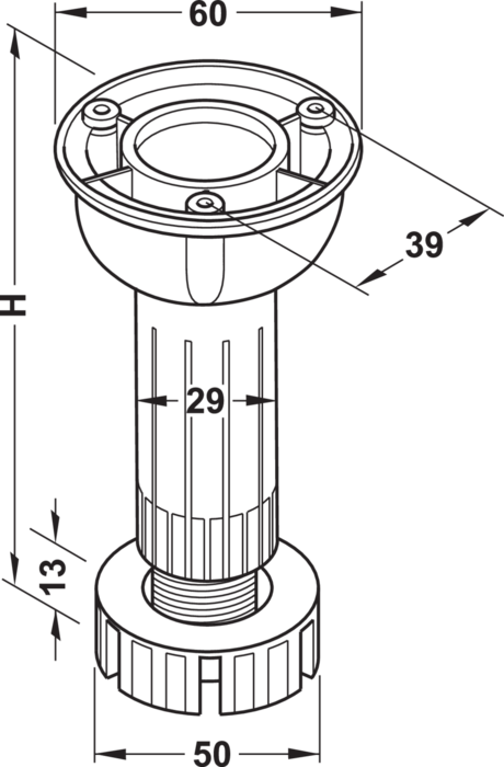Регулируеми стъпки Häfele пластмасови, черно, на винт, вис. 80 мм