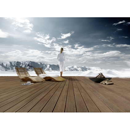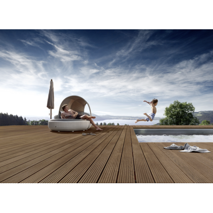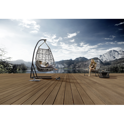 Термоясенът се разпознава по равномерния си тъмен нюанс „лате макиато“, върху който се открояват контурите на годишните кръгове. Компактната текстура и гладката повърхност на този тип декинг го правят приятен за ходене. Термоясенът демонстрира абсолютен стил дори и в посивял стадий.